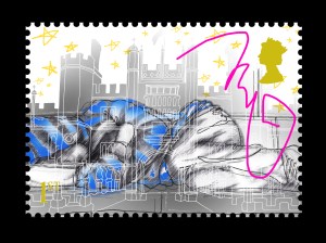 When creating artwork for the stamps, I took inspiration from the London I saw around me, as well as doing more research online and in books. I sketched or photographed four of London’s Palaces – Buckingham Palace, St. James’s, Hampton Court and The Tower of London – plus Royal insignia and other subjects or objects closely associated with Royal life. I also sketched or photographed homeless life on the street. The ethics of this type of project are complicated. It felt wrong creating artwork from someone’s experience of sleeping rough if the project itself was not commissioned in order to offer help to homeless people. For this reason, I sketched many of the images of homelessness from photographic images found online.