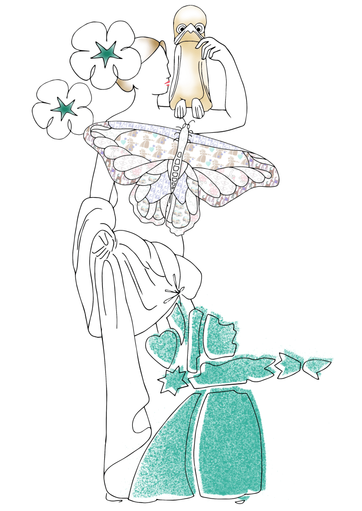 I created the packaging templates using the Pen Tool in Adobe Illustrator before starting to plan the designs themselves. I layered up the different sketches I had made at the museum, and from this I created a clean collage style of simple line drawings with soft and delicate patterns and fills so as not to overpower the outlines. Each design was unique, but clearly related to the other designs in the same range.