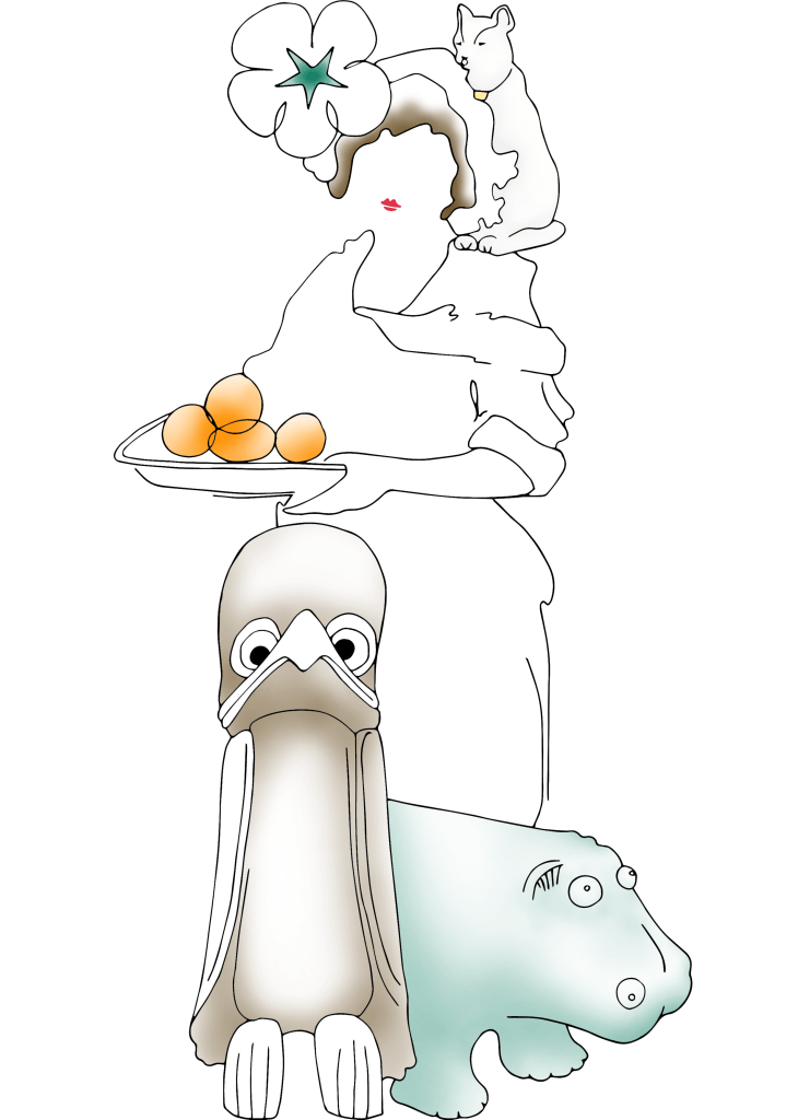 And when it came to the napkins, I communicated the difference between the cafe and the smarter restaurant in my designs. I used an image of a market girl serving oranges in the more eclectic design I created for the cafe serviettes, with bright pops of colour. The restaurant napkin design, on the other hand, was cleaner and more classic with an elegant centred and symmetrical butterfly motif.