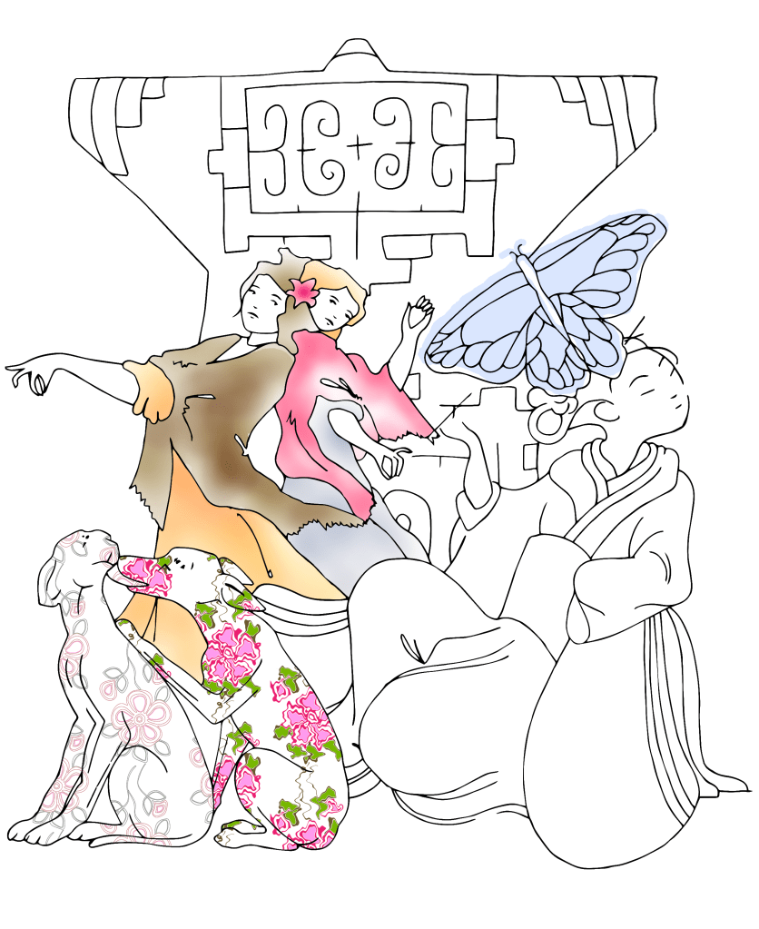 Response: After spending a couple of days sketching in the British Museum and researching the exhibits, plus packaging and serviette design further online, I started to develop my designs and artwork. I decided that I wanted to create a gift box of postcards, two different pillow boxes for the accompanying loose pens, adding gift tags too, plus the two napkin designs.